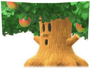 - 作为水果山林的BOSS登场,战前提供的能力有烈火、阳伞和溜溜球,战斗之前没有场景切换,选择能力或者盟友之后往前走就可以直接遇到,随后也有登场当然你可以选择找到HAL秘密之后乘坐盟友新星来对付大树。一周目剧情当中还有个以秋季落叶为基础的远古版本,会掉落樱桃;在后续更新的版本追加的异次元空间的英雄同盟里,还追加了整体为黑白色的异次元版本。