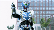 - 将 飞影·必杀卡 插入 绝影旋风锁 所释放的必杀术,向对方刺去,汇聚意能发出强力电流以破坏其体内结构,最后再以斩击令其消灭。