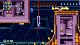 BOSS会在场景上方来回移动。BOSS会释放电流使一些残骸组成Badniks。