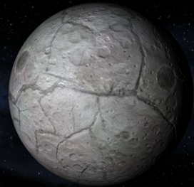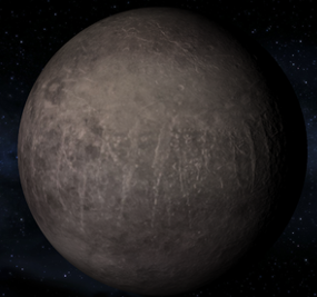 这是一个由冰和岩石大致相等的部分组成的寒冷世界,表面相对没有陨石坑,这表明它在历史上的某个时期表面重塑过。这是一个极端的世界(两侧的日光持续42地球年),但这是一个你们的定居者渴望克服的挑战。