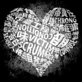 背景图片通常都由自己绘制,工具是Photoshop和SAI,通常是用汉字和单词来组成与歌曲意义相关的图案或直接相关图片。