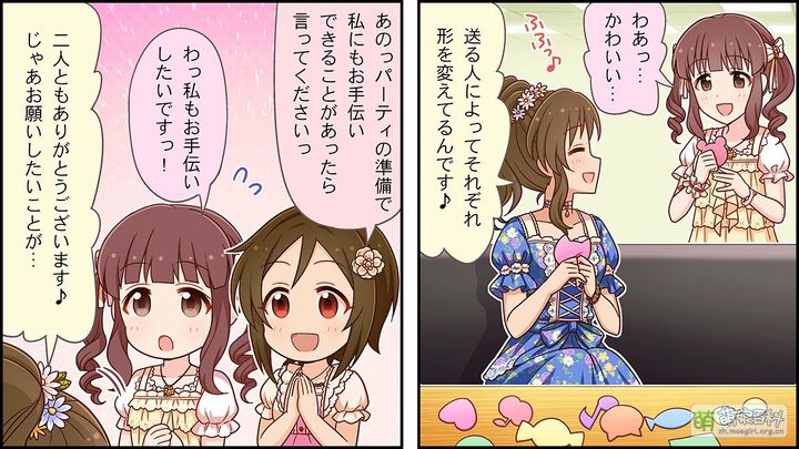 - 同小日向美穗结成组合「マグナウィッチーズ」(Magna Witches),并在情人节一同约会(其实是蓝子协助美穗亲手制作曲奇送给制作人)。