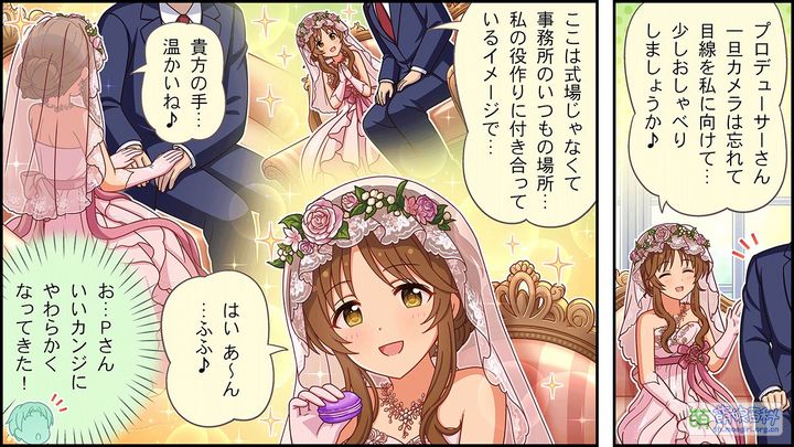 第15话中,和日野茜一起聊天,提到自己的工作受到了美城常务社内改革的影响,