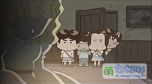 游乐场的鬼屋时常设置各种机关或安排演员扮演鬼怪,达成惊吓效果,图为《我们这一家》立花柚彦(通称「柚子」)和班上同学光顾游乐场鬼屋的桥段