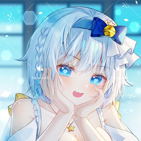 浅蓝色的头发上带着一个附有蝴蝶结和铃铛的发卡,同时在右侧发编有一个小麻花辫并在发梢处别有一个⭐。