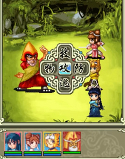 在战斗界面,可以攻击敌人、使用技能。击败敌人可以获得经验值和金钱,达到一定经验值,人物升级。