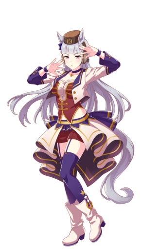 | 萌点 | 马娘、兽耳、真·尾巴、长直、齐刘海、短刘海、帽子、蝴蝶结、领结、耳套、臂环、手套、腰包、腿环、白色连裤袜、长靴、高跟鞋、半睁眼、巨乳、调皮、脱线、颜艺、搞事、厨师、静态美人、骚话、说谎、飞踢、电波、虚拟UP主 | |