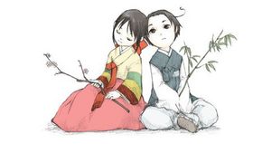 - 与韩/国是兄弟,两人一起长大,但时不时会吵架,尤其是在朝/鲜/战/争期间。