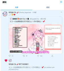 | 1月22日 | 在B站投稿了第二个视频《【珍贵资料流出】echo的hololive演技面试与模仿前辈!》。[15] | |||