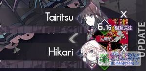 如果在好友码输入界面输入000000001和000000002这两个ID,就会分别在列表中添加"Hikari"和"Tairitsu"这两个官方号,且头像右下角有"互相关注"的标记,搭档对应各自的名字,无游玩记录,ptt值为6.16,即lowiro谐音。