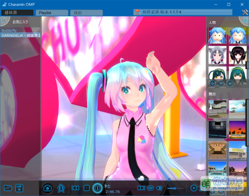 Charamin OMP是一个根据歌曲自动生成3D角色的舞蹈的音乐播放器。它是免费软件,但可从官方商店购入动作包、人物模型、舞台模型等。