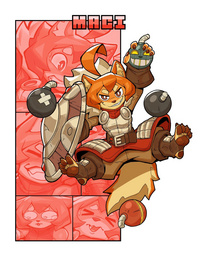 持有武器Quartz lance和盾牌。有使用重型火炮的经验。曾在疯狂魔法师Skullmeir门下学习,是难得一见的魔法天才。而魔法之外,她对文学、历史乃至奥术都颇有造诣,但早年长期居于家中,才能无以施展。