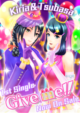 Give me!!是游戏《幻影异闻录♯FE》中的插曲,由Kiria(黑乃雾亚,CV:南条爱乃)和织部翼(CV:水濑祈)演唱。收录于2016年2月10日发售的专辑《幻影異聞録♯FE ボーカルコレクション》和2020年1月17日发售的专辑《幻影異聞録♯FE Encore ベストサウンドコレクション》中。