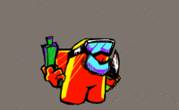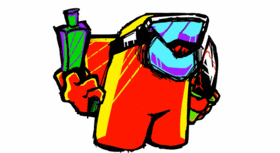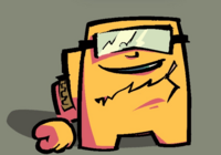 Hacker是一个呈饱和黄色/故障黄色的豆型宇航员,戴着一副滑雪护目镜,手持一把刀和一把枪。