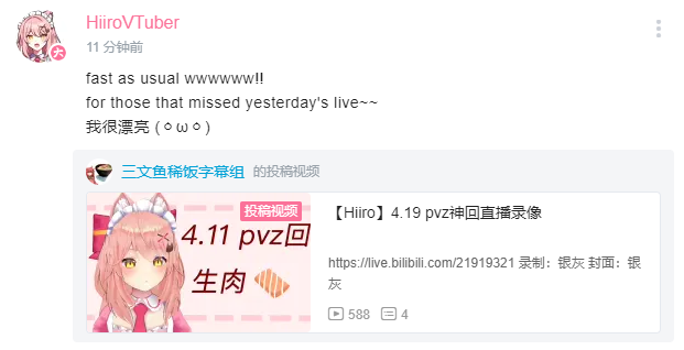 4月25日发动态表明将抛弃PCR(bushi)回归明日方舟,原因是自己看了明日方舟的周年庆直播。(据本人描述能听懂50%—75%的内容)