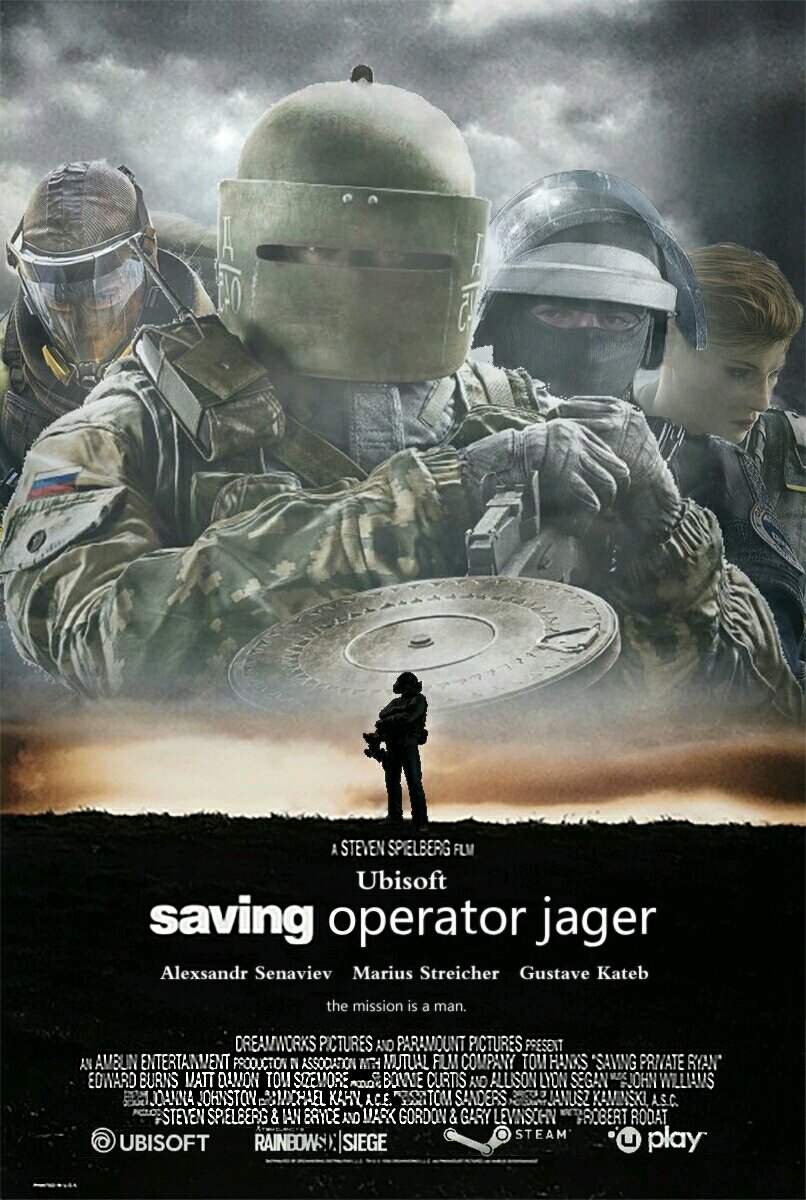 源自于在奇美拉行动期间的OUTBREAK模式,在OUTBREAK模式上线前,有人上传了一段OUTBREAK模式的试玩视频,而随着在“谢拉郡天堂 第一部”这一章节中玩家们惊讶地发现Jäger居然坠机了,伴随着Jäger的高人气,不少玩家模仿拯救大兵瑞恩的宣传海报弄出“拯救大头Jäger”的恶搞相关