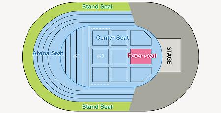 在迎接初音未来8月31日, 诞生六周年生日的前一天所举办的"MAGICAL MIRAI 2013"里,举行最大规模的初音未来演唱会! ●晚上场座位图 ※横滨ARENA的观众席是采用lambda系统操作的,在后方也可以清楚地看到舞台。 | |||||||