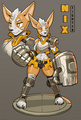 Nix的犬种取自威尔士柯基犬(Welsh corgi),毛色呈现一般柯基的黄色,身材较为矮小。全队第二矮