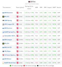 2021年初,随着Gambit的崛起,sh1ro等队员开始进入大众视野,他在2021年IEM卡托维兹上的狙击水平与残局胜率令人印象深刻。早在这之前sh1ro便在独联体赛区熠熠生辉。