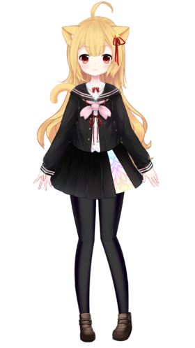 来自异世界的猫娘少女,身着黑色JK制服和黑丝。 黄色头发、头上有一枚铃铛。
