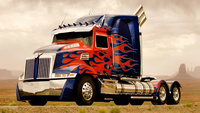 真人世电影第一至三部中,擎天柱的载具是一辆进行了深度改装的彼得比尔特379卡车头,并增加了双重火焰纹涂装。