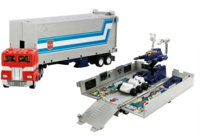 "Battle Convoy"的造型是一辆带有红车头,蓝拖挂,白条纹的平头式卡车头,但实际上其并没有真正意义上的原型车。