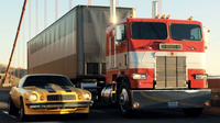 大黄蜂外传结尾以1985版的福莱纳FLA卡车造型亮相,车头涂装与挂载车厢都致敬了"Battle Convoy"的造型。