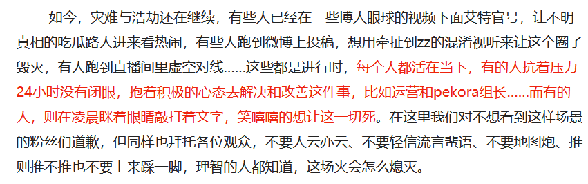 评:你要单论兔田女士本人做错了什么,那还真不至于被炎上 但关键是字幕组的骚操作那是在逼着兔女士自杀啊 从那个脑瘫新人类组长说出"东大人上人"这句的时候,我就知道我错了 V8搞兔子也就图一乐,真要兔子死还得看字幕组 人家V8在送兔子之前好歹还知道请全村人吃顿饭,字幕组那是比V8还急,唢呐都不想吹,恨不得当场抬棺愉悦送走 删评论实属恶心人,壬↑壬就这?就这就这就这就这??? 接着又发了一篇旷世奇文,纵观全文,其通篇骂人不吐脏字,甩锅自然而然,文体浑然天成,下笔如有神助,可谓厚黑学传统艺术之典范,乃现代泼脏水技术之精华,要求通读课文并全篇背诵 脑瘫组长还想着辞职 笑死我了,这不来表演个字幕组全体死刑你个脑瘫对的起带火? 可以,这波啊,这波是管人粉丝比管人好看,管人字幕组比管人粉丝还好看,V圈(juàn)彻底饭圈化 别问,问就冰清玉洁,保护 |