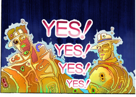 在《石之海》动画的OP《STONE OCEAN》的一个画面中,也对“Yes! Yes! Yes! ”和“No! No! No! ”进行了致敬。